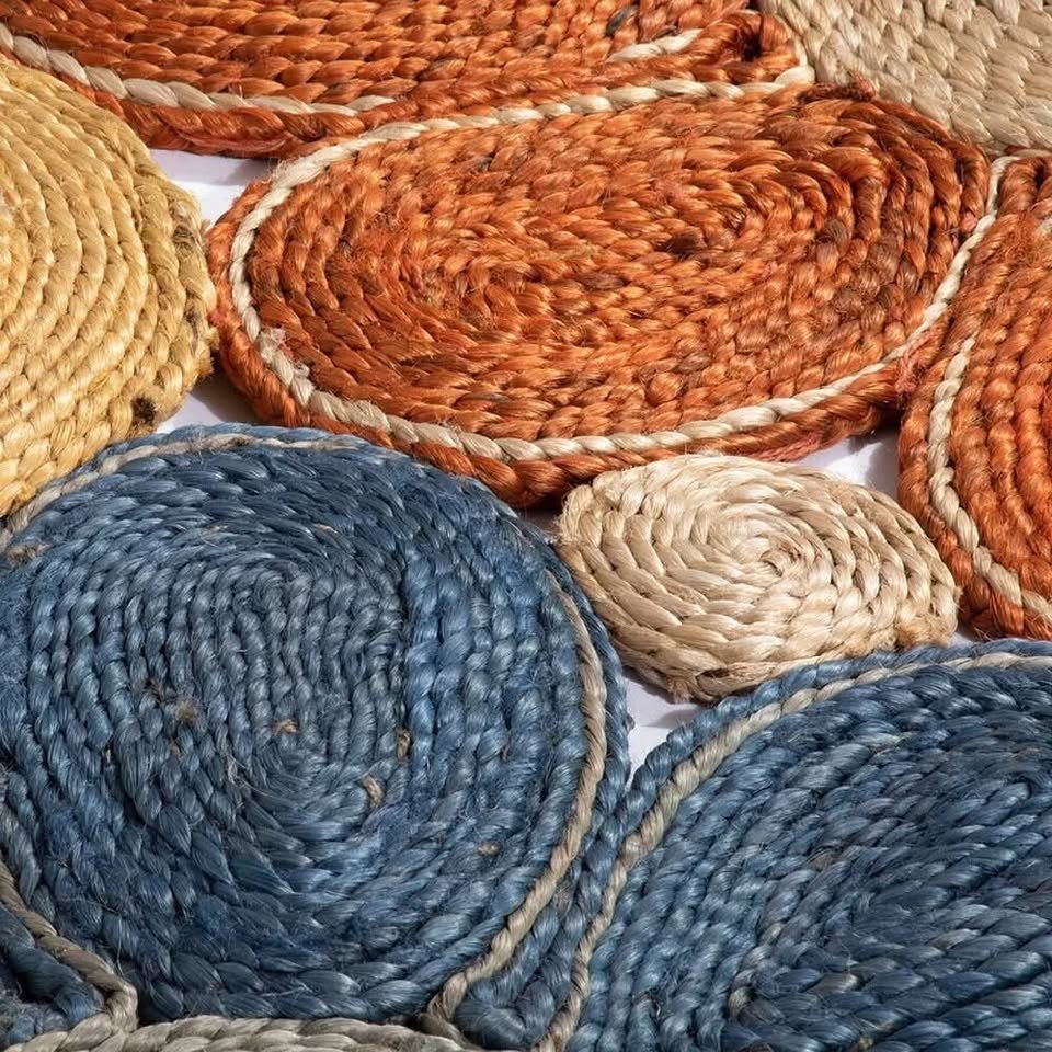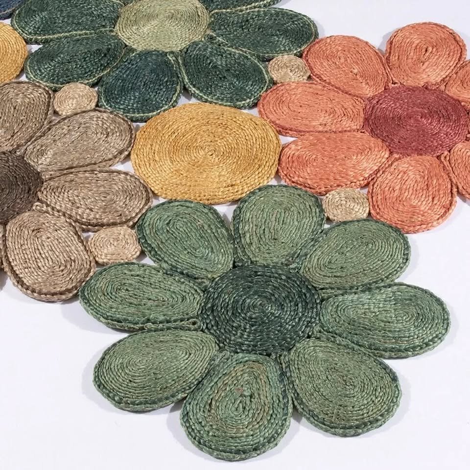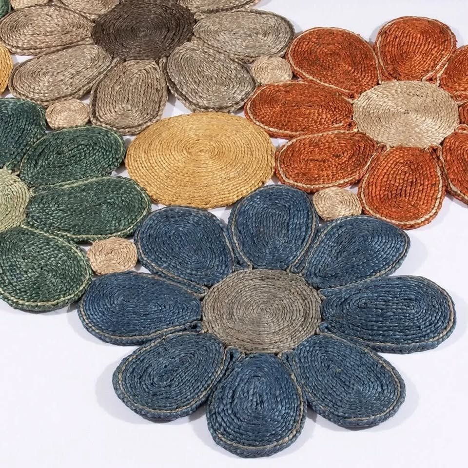 Each flower is carefully hand-braided and stitched together, which means no two rugs are ever the same. This stunning statement piece will brighten up your living space. This playful rug uses natural materials to create exquisite pieces, as is the ethos of the Naturelle Collection. This jute rug is reversible and hard-wearing thus suitable for heavy use.