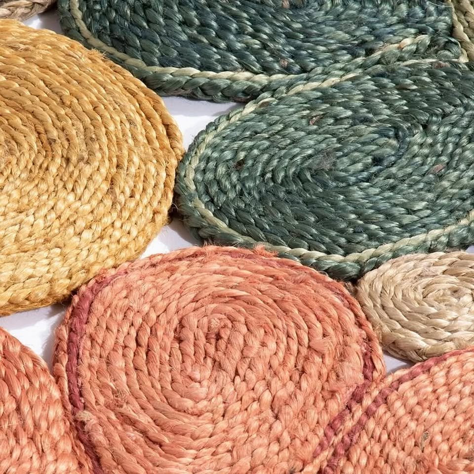 Suitable to use indoors or even sheltered outdoor use. Colours: Pink, Green, Beige, Yellow, Green, Orange, Blue and Grey Materials: Jute Width: 120 centimetres Length: 170 centimetre
